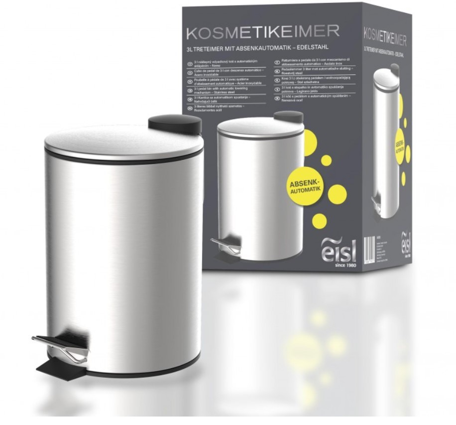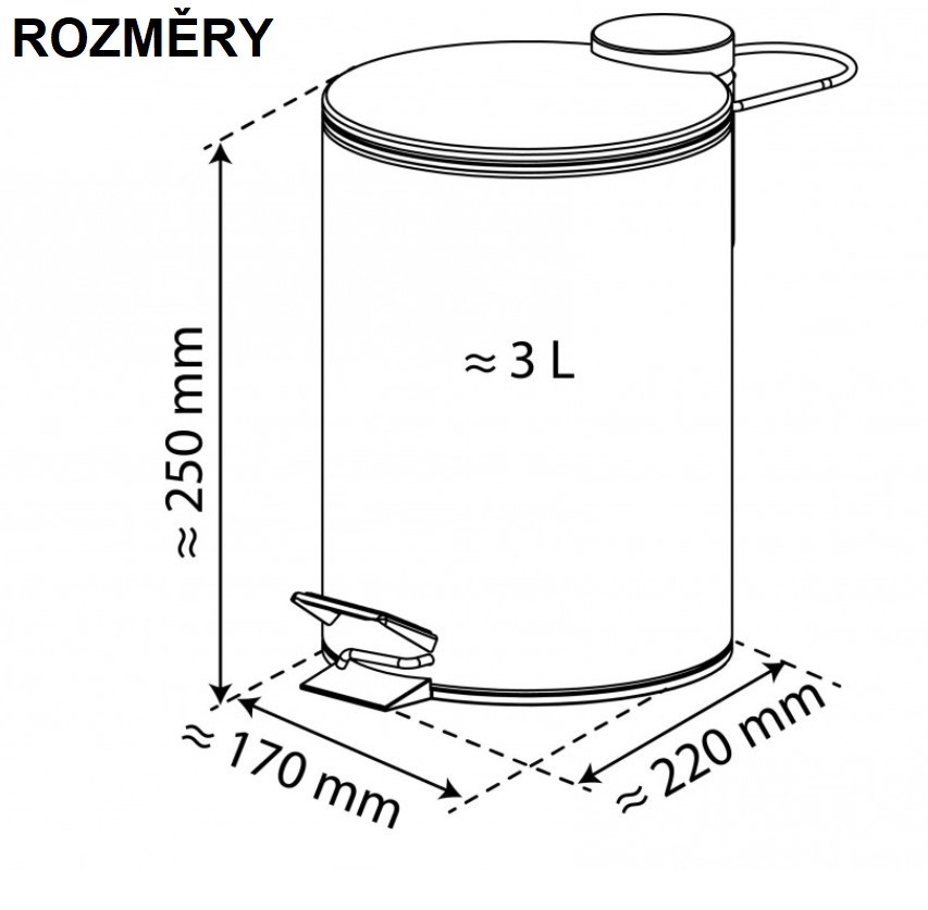 Kosmetický pedálový koš, nerezová ocel, cca 3 l, s automatickým spouštěním