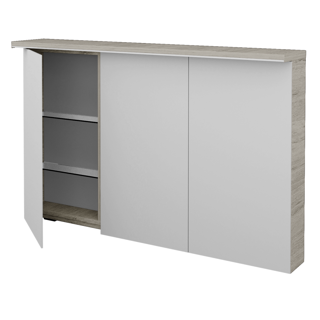 Parametry galerkyZrcadlová skříňka ASTON GA3OE 120 je konstruována jako třídveřová s oboustrannými zrcadly. Ta jsou uchycena ke korpusu pomocí značkových pantů Grass a speciální zrcadlové lišty, která je chráněná českým patentem.