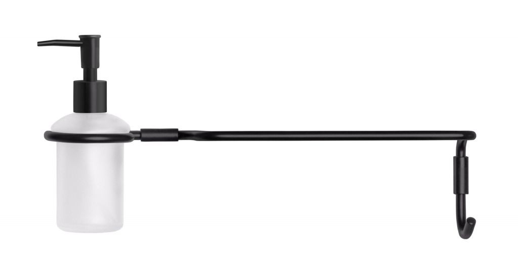 Série MINI v moderní černé barvě je tvořena dávkovačem mýdla, WC štětkou, háčkem, držákem toaletního papíru a držákem na ručníky.