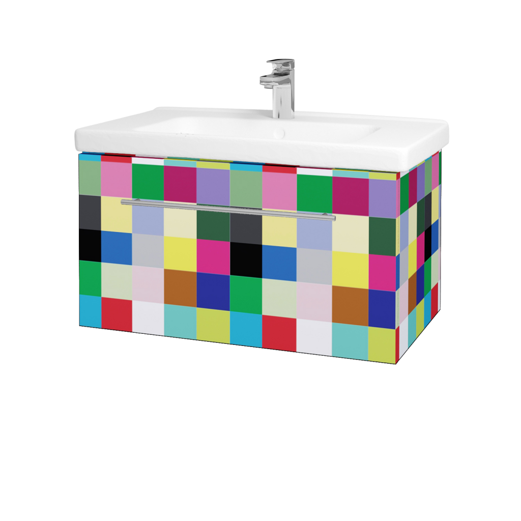 Součástí ceny této koupelnové skříně je s hranatým tvarem a pochromovaným odtokem. Vanička umyvadla má v přední části praktické zešikmení. Horní plocha umyvadla je rovná a může sloužit pro odkládání různých předmětů.