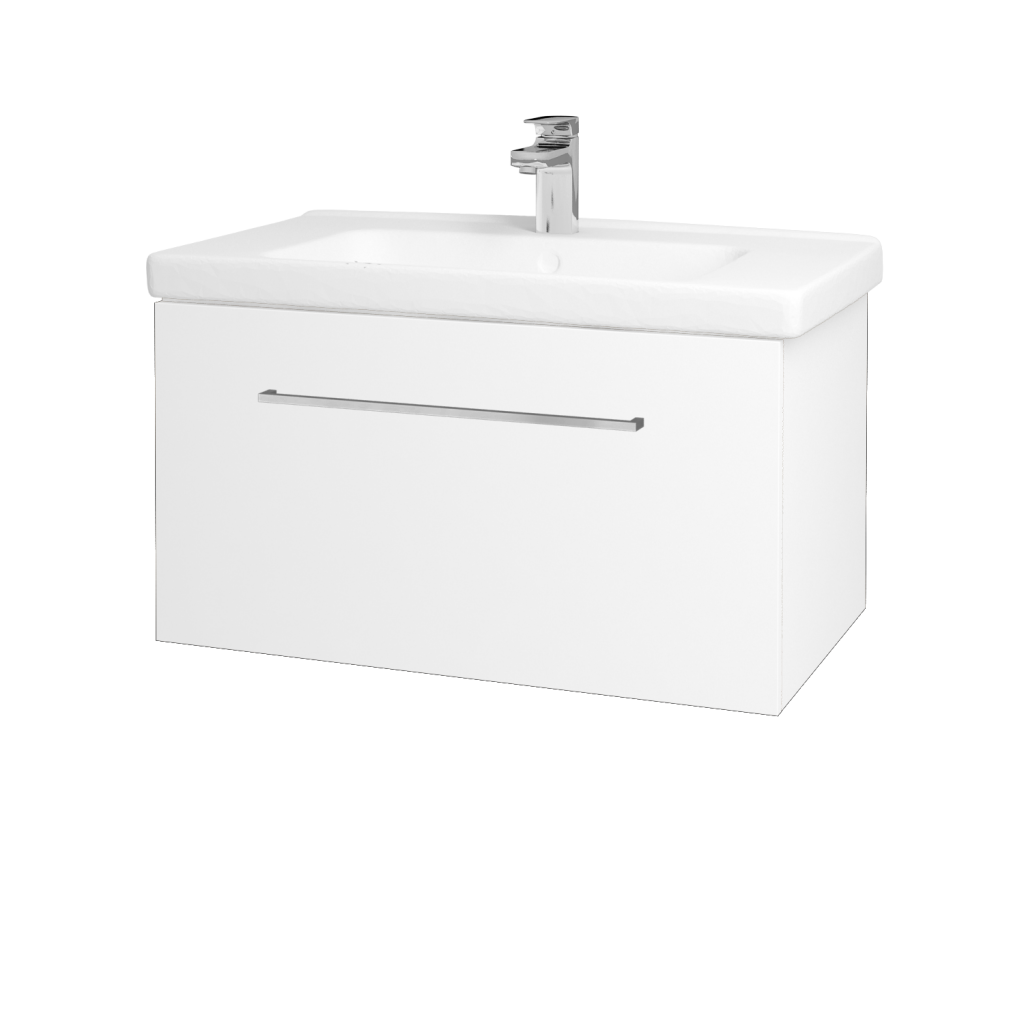Součástí ceny této koupelnové skříně je s hranatým tvarem a pochromovaným odtokem. Vanička umyvadla má v přední části praktické zešikmení. Horní plocha umyvadla je rovná a může sloužit pro odkládání různých předmětů.
