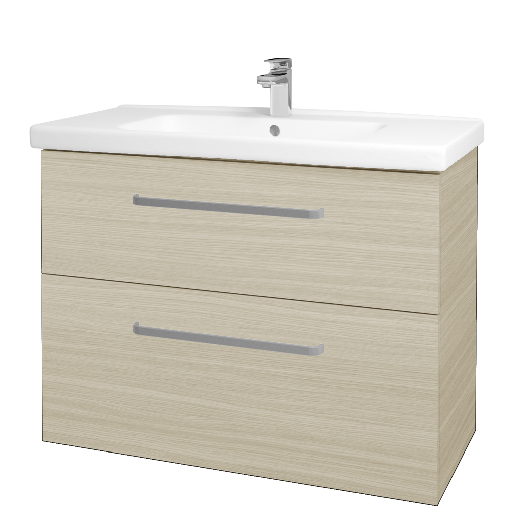 Kvalitní keramické umyvadloSoučástí ceny této koupelnové skříňky je kvalitní keramické s hranatým tvarem a pochromovaným odtokem. Vanička umyvadla má v přední části praktické zešikmení. Horní plocha umyvadla je rovná a může sloužit pro odkládání různých předmětů.