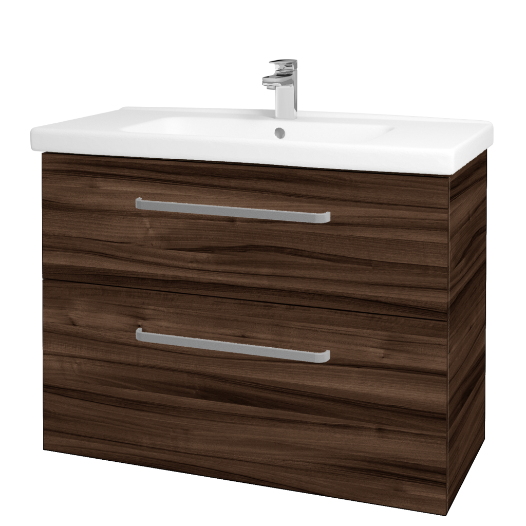 Kvalitní keramické umyvadloSoučástí ceny této koupelnové skříňky je kvalitní keramické s hranatým tvarem a pochromovaným odtokem. Vanička umyvadla má v přední části praktické zešikmení. Horní plocha umyvadla je rovná a může sloužit pro odkládání různých předmětů.