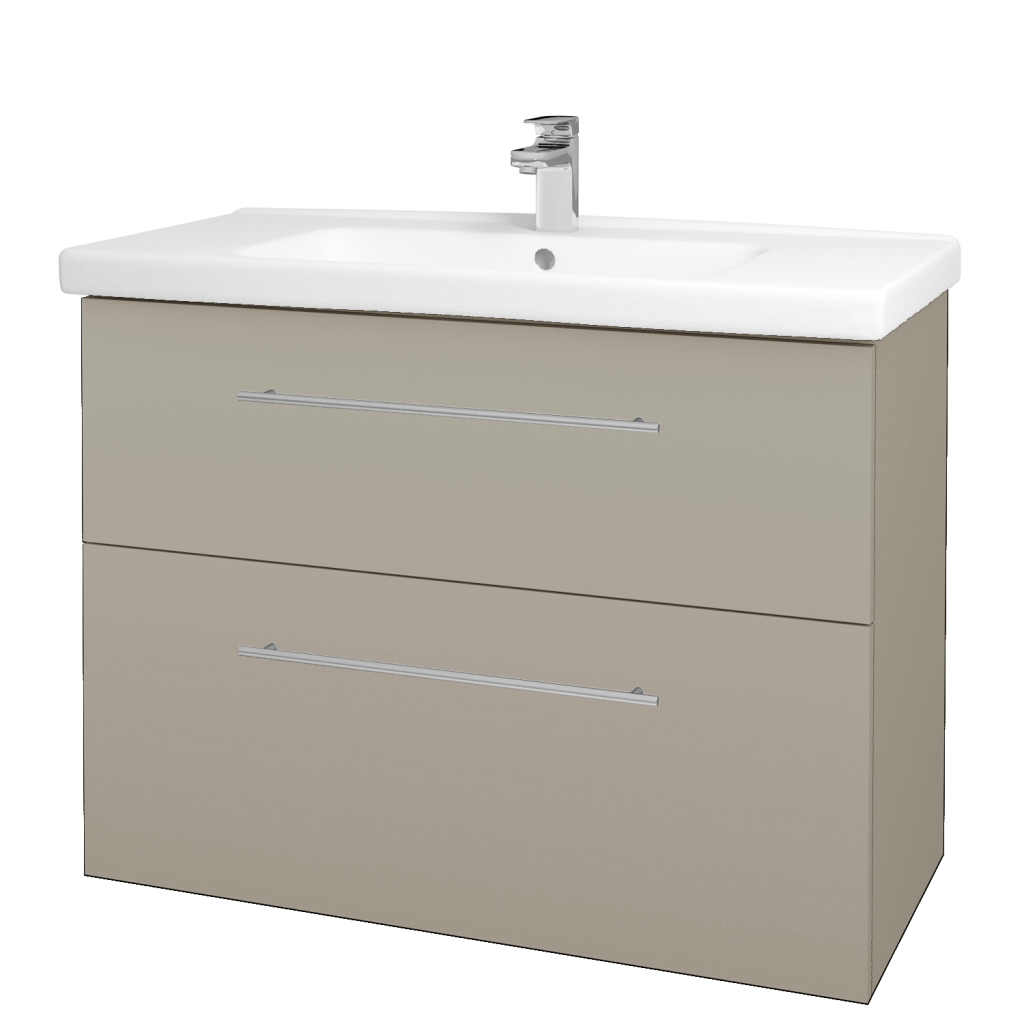 Kvalitní keramické umyvadloSoučástí ceny této koupelnové skříňky je kvalitní keramické s hranatým tvarem a pochromovaným odtokem. Vanička umyvadla má v přední části praktické zešikmení. Horní plocha umyvadla je rovná a může sloužit pro odkládání různých předmětů.