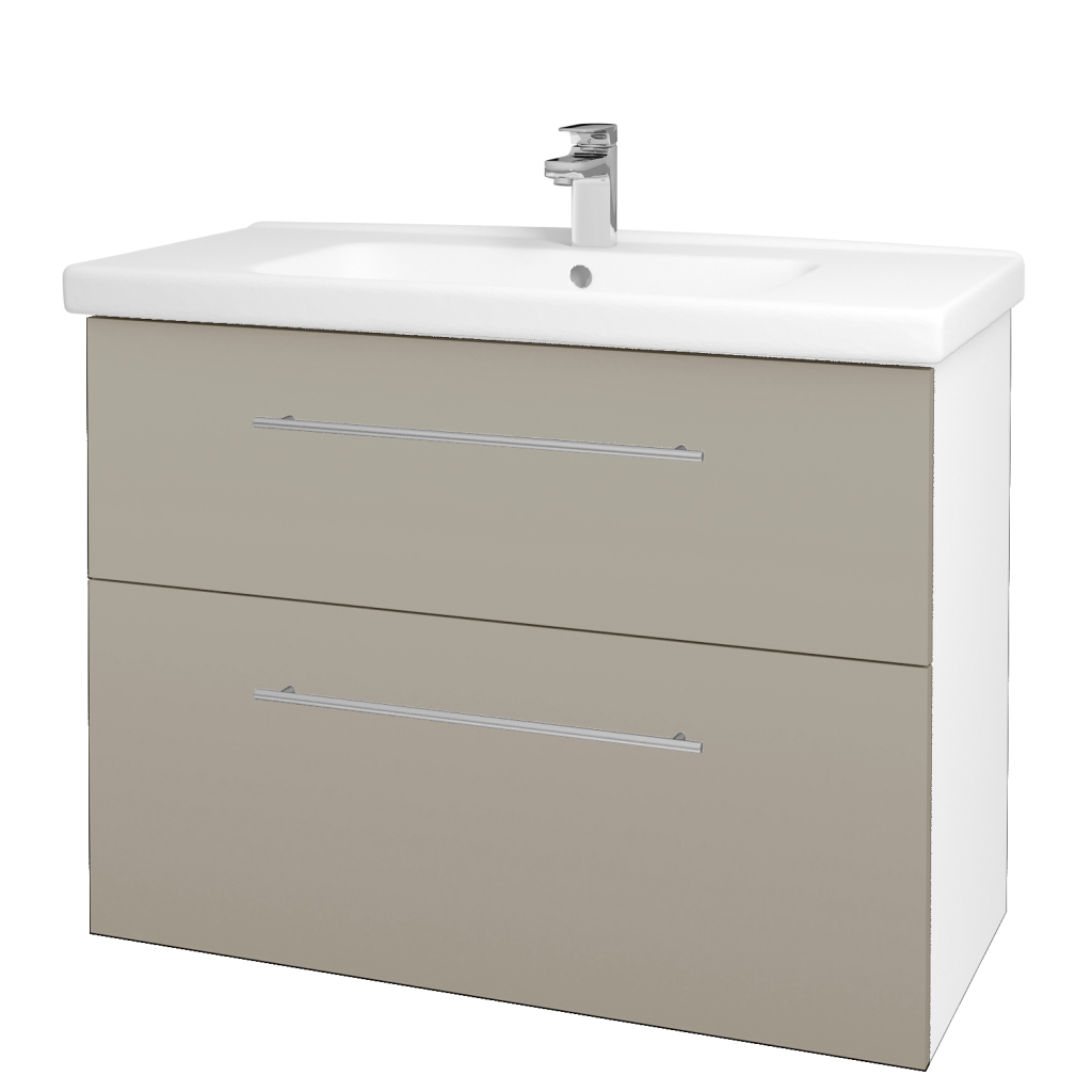 Kvalitní keramické umyvadloSoučástí ceny této koupelnové skříňky je kvalitní keramické s hranatým tvarem a pochromovaným odtokem. Vanička umyvadla má v přední části praktické zešikmení. Horní plocha umyvadla je rovná a může sloužit pro odkládání různých předmětů.