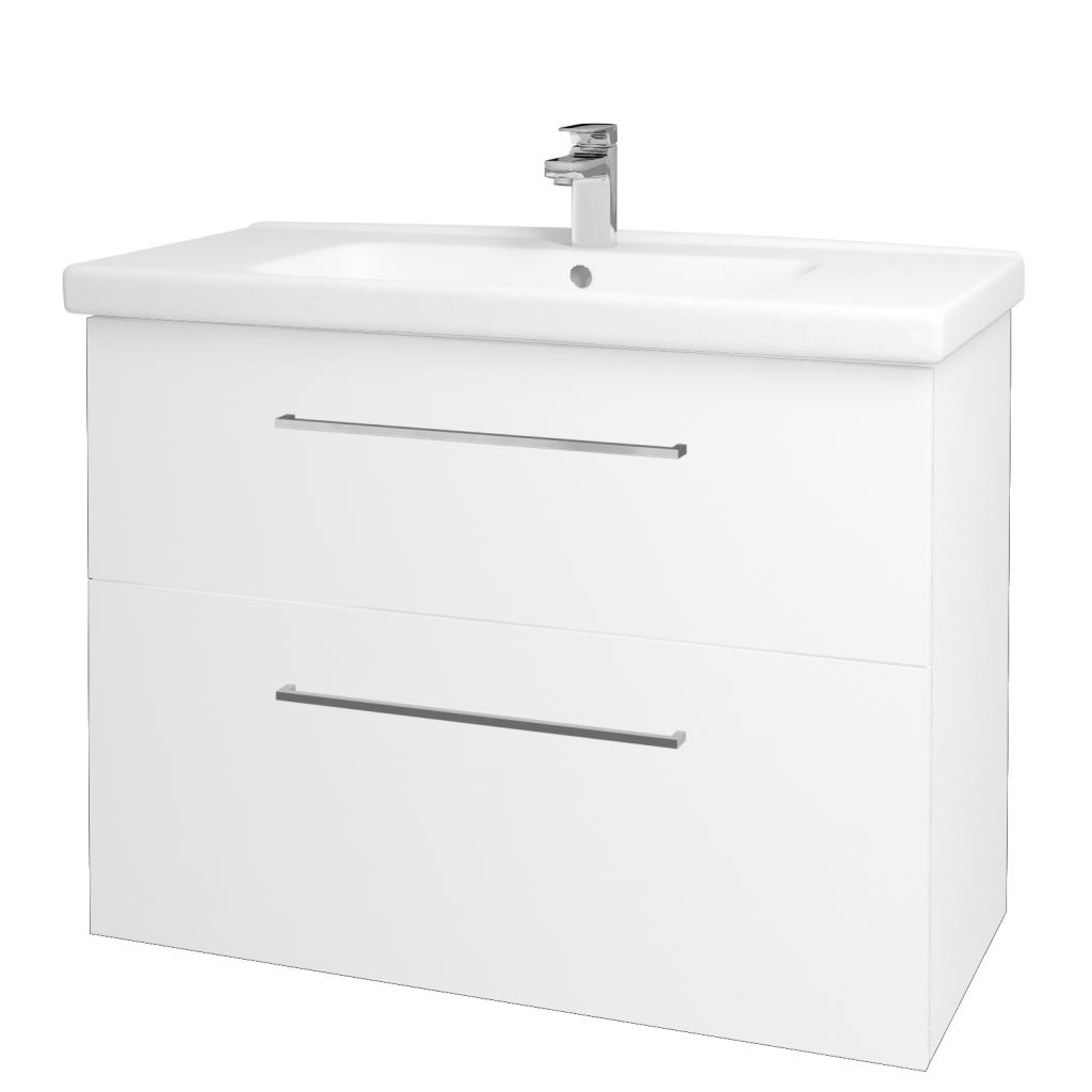 Kvalitní keramické umyvadloSoučástí ceny této koupelnové skříňky je kvalitní keramické s hranatým tvarem a pochromovaným odtokem. Vanička umyvadla má v přední části praktické zešikmení. Horní plocha umyvadla je rovná a může sloužit pro odkládání různých předmětů.