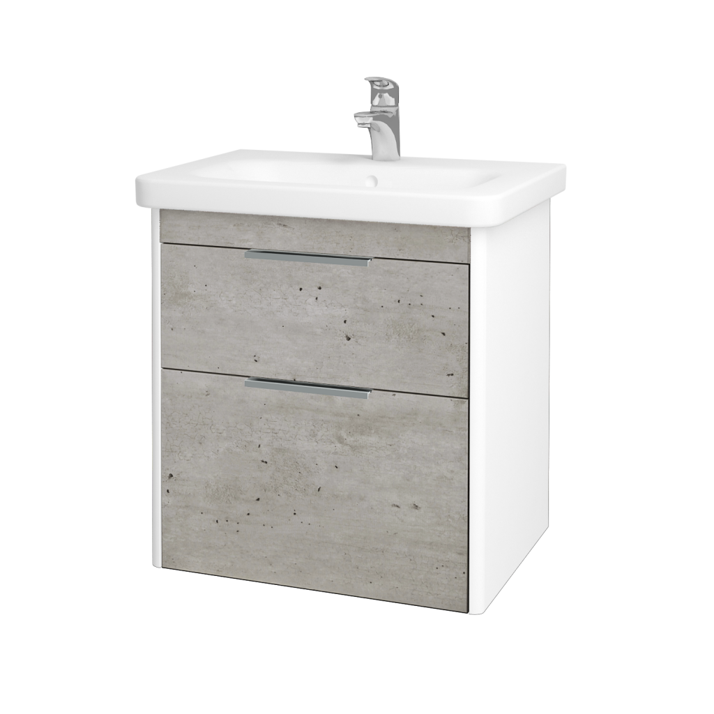 Koupelnová skříň řady ENZO v závěsném provedení je široká 65 cm, a proto se hodí do malých koupelen, kde nezabere místo a díky dvěma zásuvkám poskytne dostatek úložného prostoru.