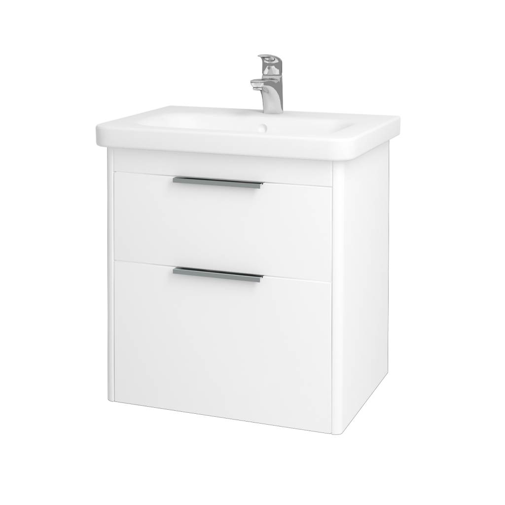 Koupelnová skříň řady ENZO v závěsném provedení je široká 65 cm, a proto se hodí do malých koupelen, kde nezabere místo a díky dvěma zásuvkám poskytne dostatek úložného prostoru.