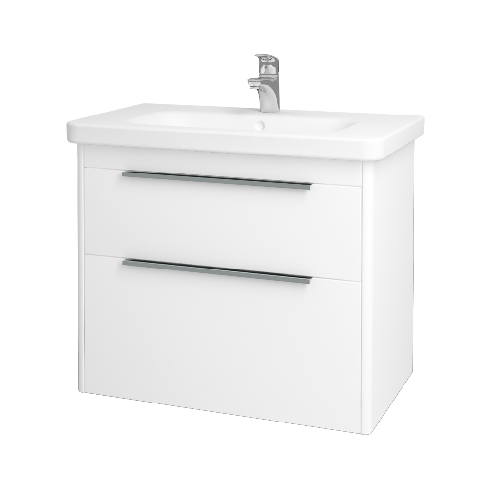 Koupelnová skříň ENZO SZZ2 80 v závěsném provedení je široká 80 cm (šířka umyvadla), je proto ideální do menších koupelen, kde šetří potřebný prostor a zároveň díky dvěma zásuvkám poskytne dostatek úložného prostoru.