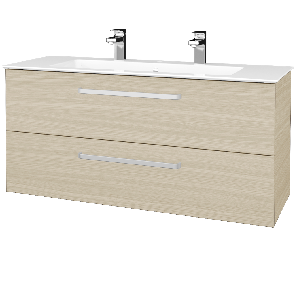 Skříňka GIO SZZ2 120 je osazena keramickým se 2 otvory pro baterii a s prostornou odkládací plochou.