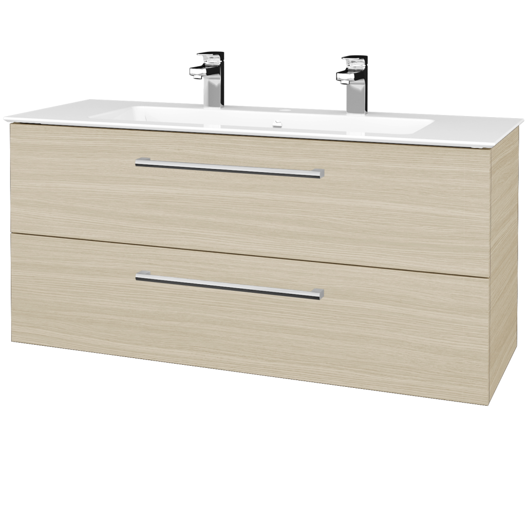 Skříňka GIO SZZ2 120 je osazena keramickým se 2 otvory pro baterii a s prostornou odkládací plochou.