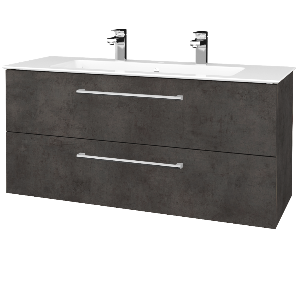 Skříňka GIO SZZ2 120 je osazena keramickým se 2 otvory pro baterii a s prostornou odkládací plochou.