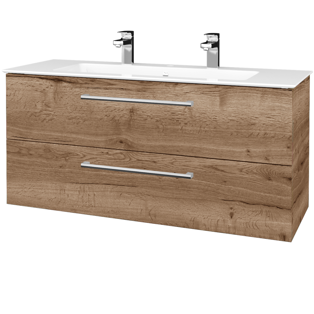 Skříňka GIO SZZ2 120 je osazena keramickým se 2 otvory pro baterii a s prostornou odkládací plochou.
