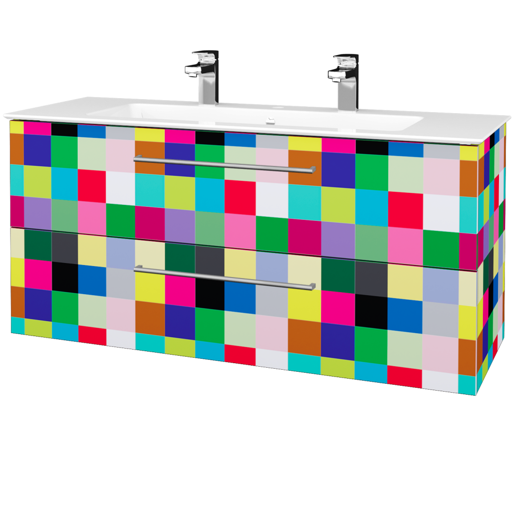 Skříňka GIO SZZ2 120 je osazena keramickým se 2 otvory pro baterii a s prostornou odkládací plochou.