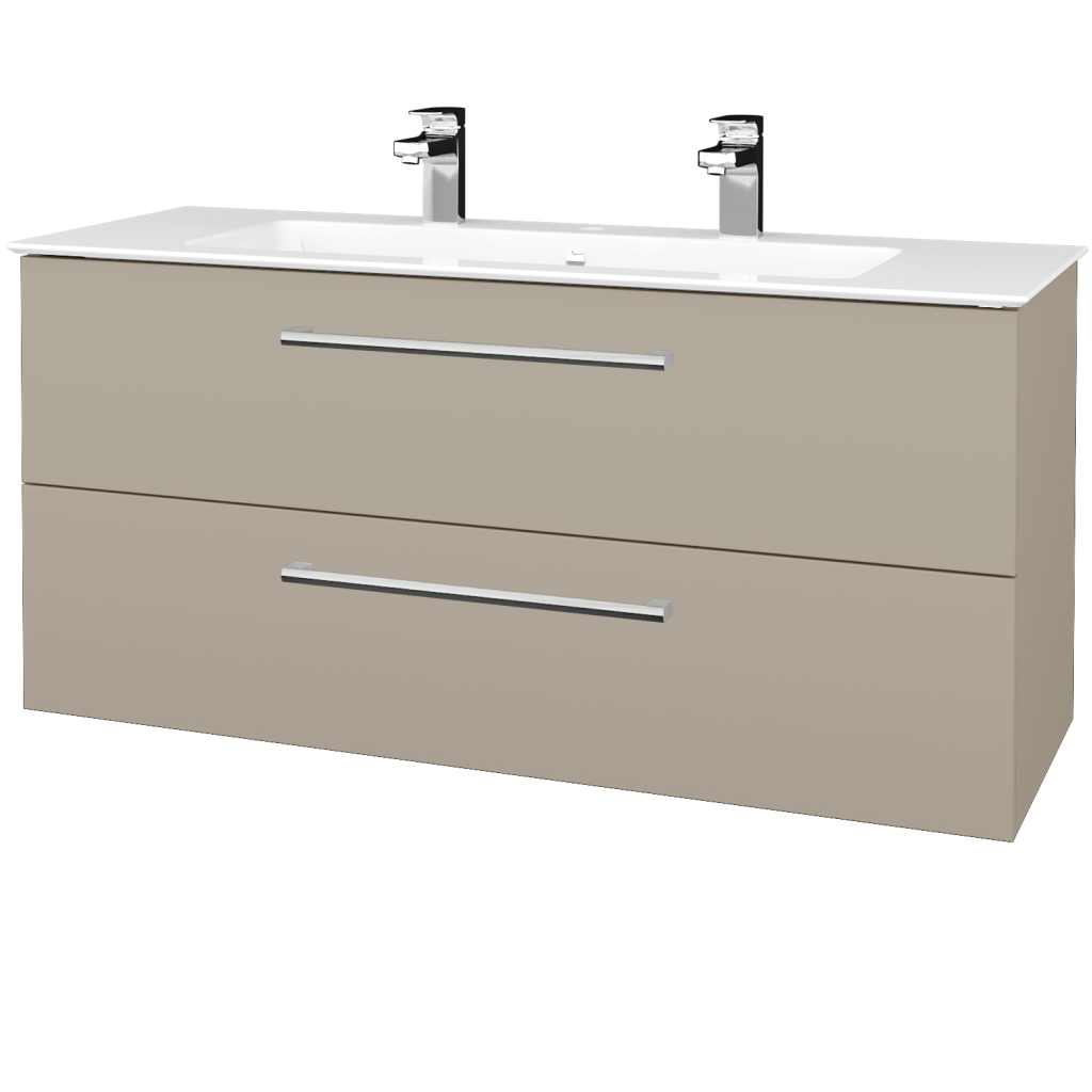 Skříňka GIO SZZ2 120 je osazena keramickým se 2 otvory pro baterii a s prostornou odkládací plochou.