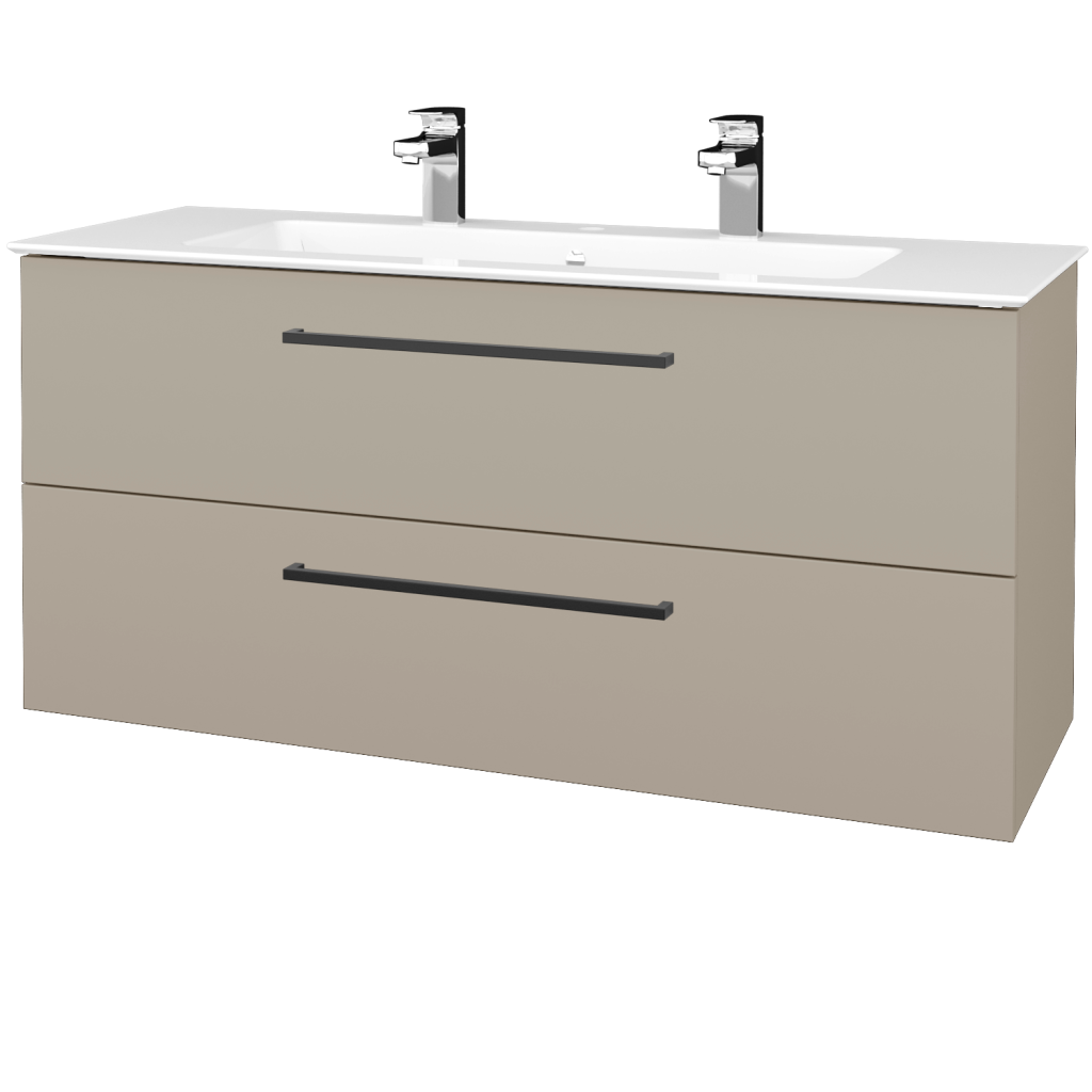 Skříňka GIO SZZ2 120 je osazena keramickým se 2 otvory pro baterii a s prostornou odkládací plochou.