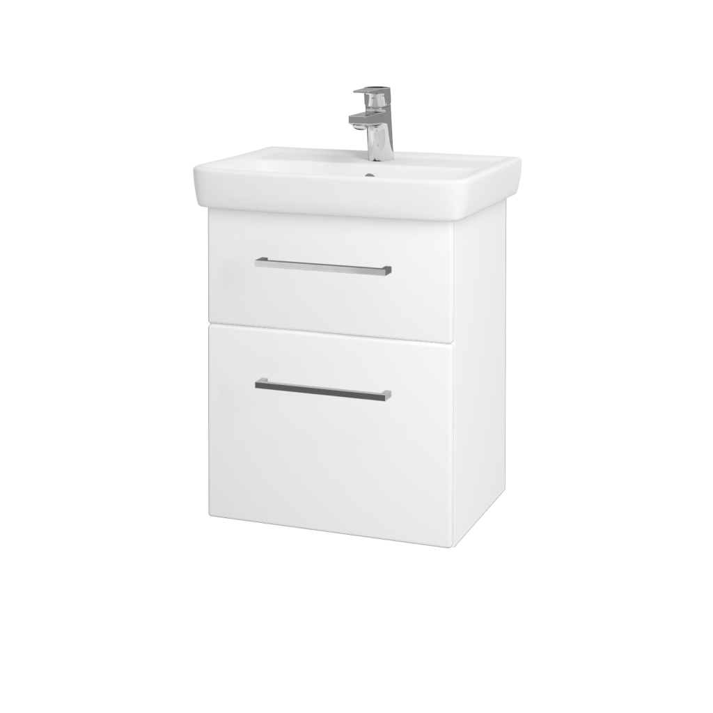 Závěsná koupelnová skříňka GO SZZ2 50 s umyvadlem (součástí ceny) a dvěma zásuvkami je součástí praktické kolekce , jejíž přednosti ocení zejména majitelé menších či středně velkých koupelen.