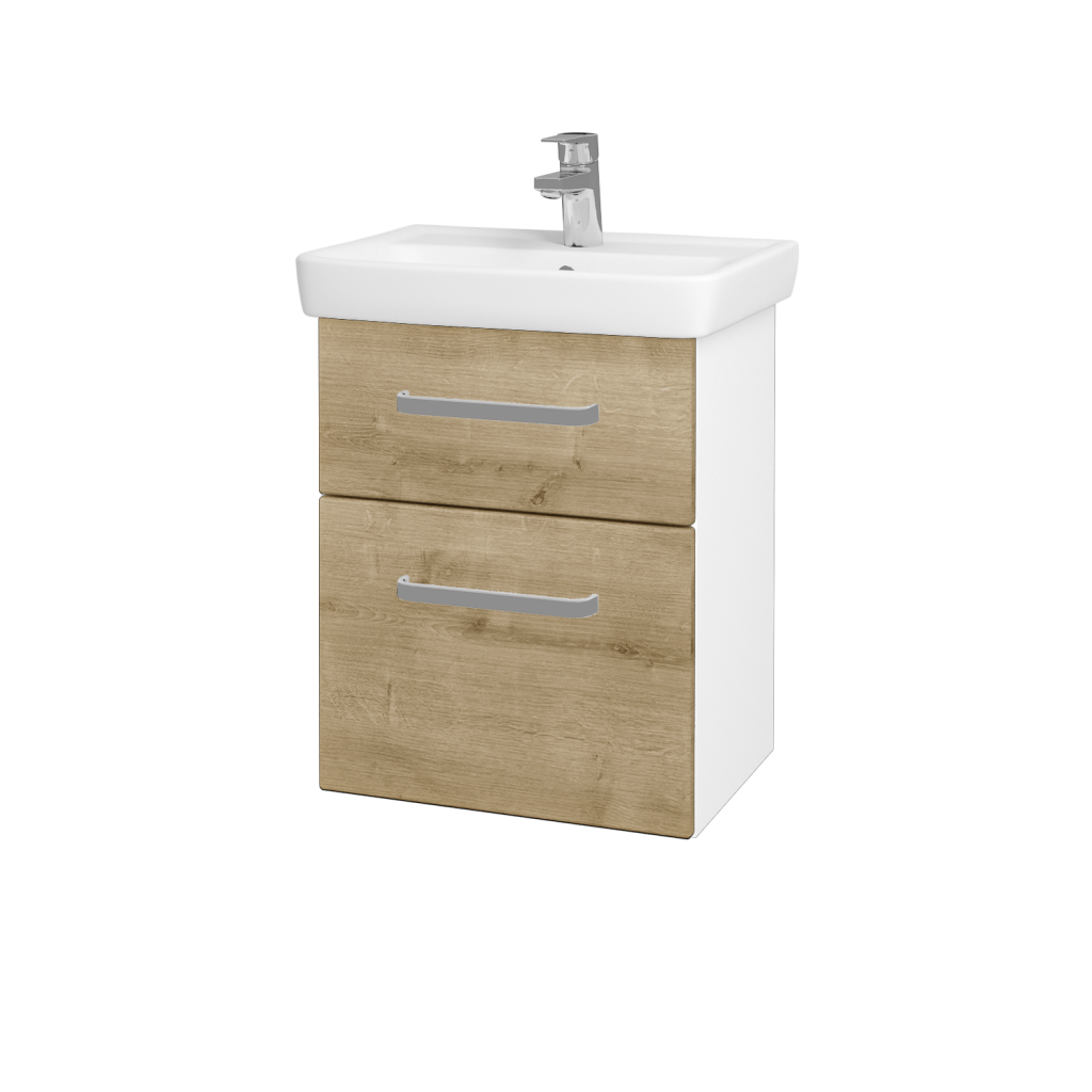 Závěsná koupelnová skříňka GO SZZ2 50 s umyvadlem (součástí ceny) a dvěma zásuvkami je součástí praktické kolekce , jejíž přednosti ocení zejména majitelé menších či středně velkých koupelen.