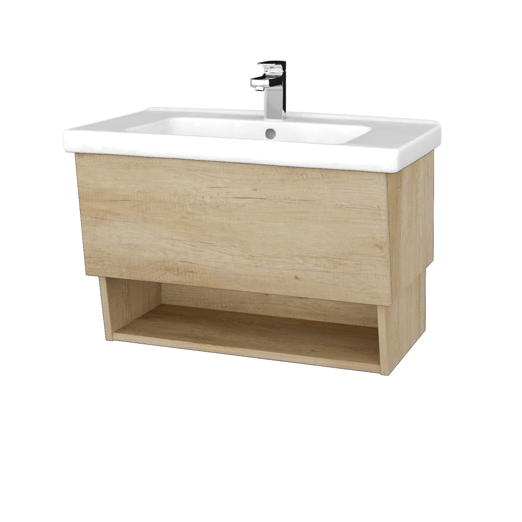 UmyvadloSoučástí ceny koupelnové skříňky je také kvalitní keramické umyvadlo Harmonia 80. Boční a zadní část umyvadla tvoří rovná plocha, která může sloužit jako praktická odkládací plocha, například pro dávkovač mýdla či další předměty potřebné pro každodenní hygienu.