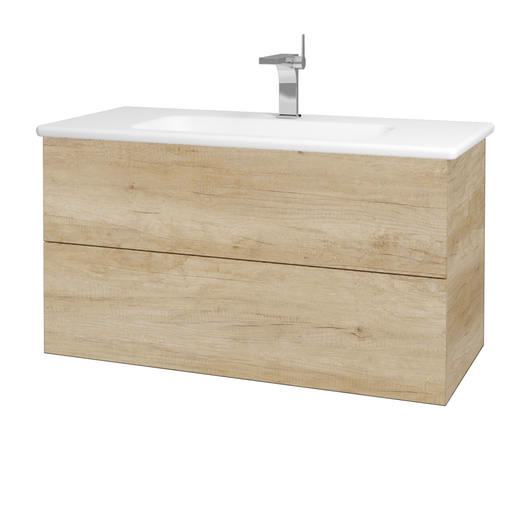Koupelnová skříň řady VARIANTE v závěsném provedení v šířce 100 cm (včetně umyvadla) se hodí do větších koupelen.