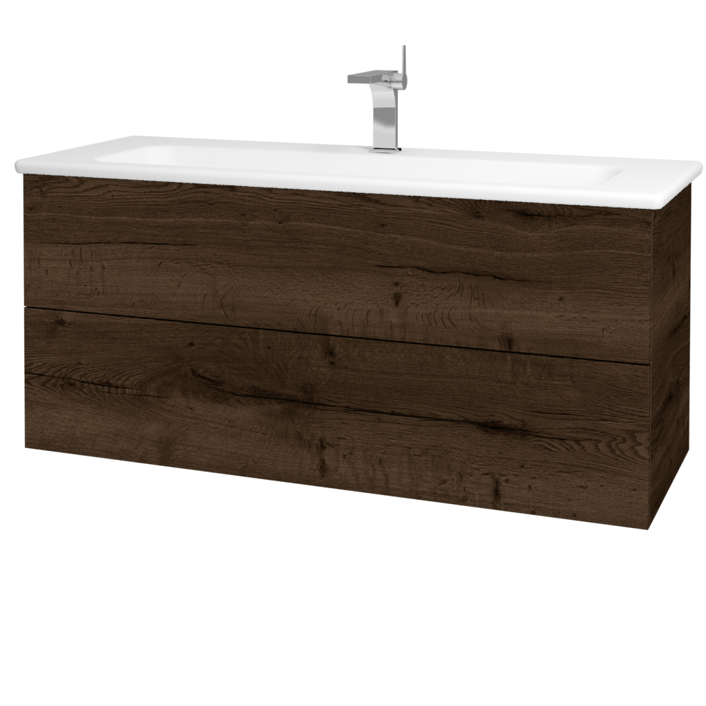 Koupelnová skříň řady VARIANTE v závěsném provedení v šířce 120 cm (včetně umyvadla) se hodí větších koupelen.