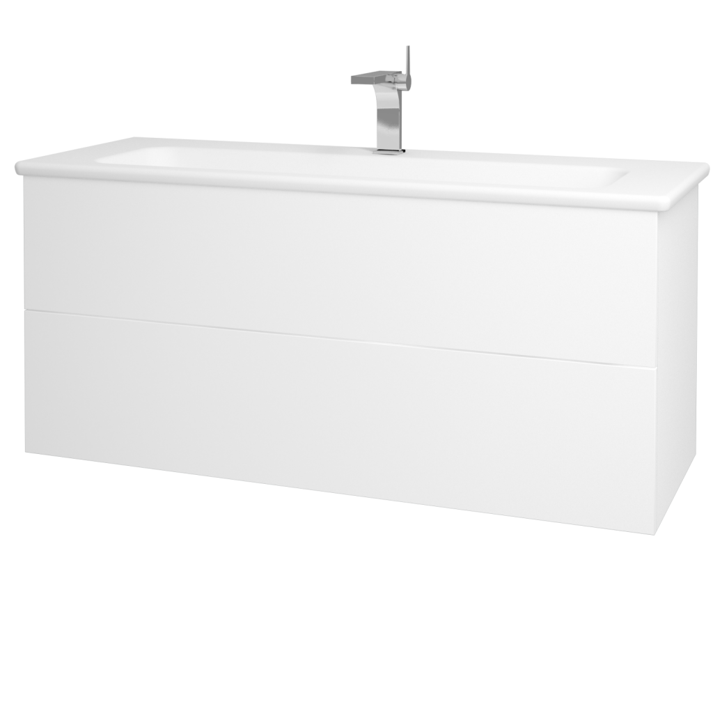 Koupelnová skříň řady VARIANTE v závěsném provedení v šířce 120 cm (včetně umyvadla) se hodí větších koupelen.