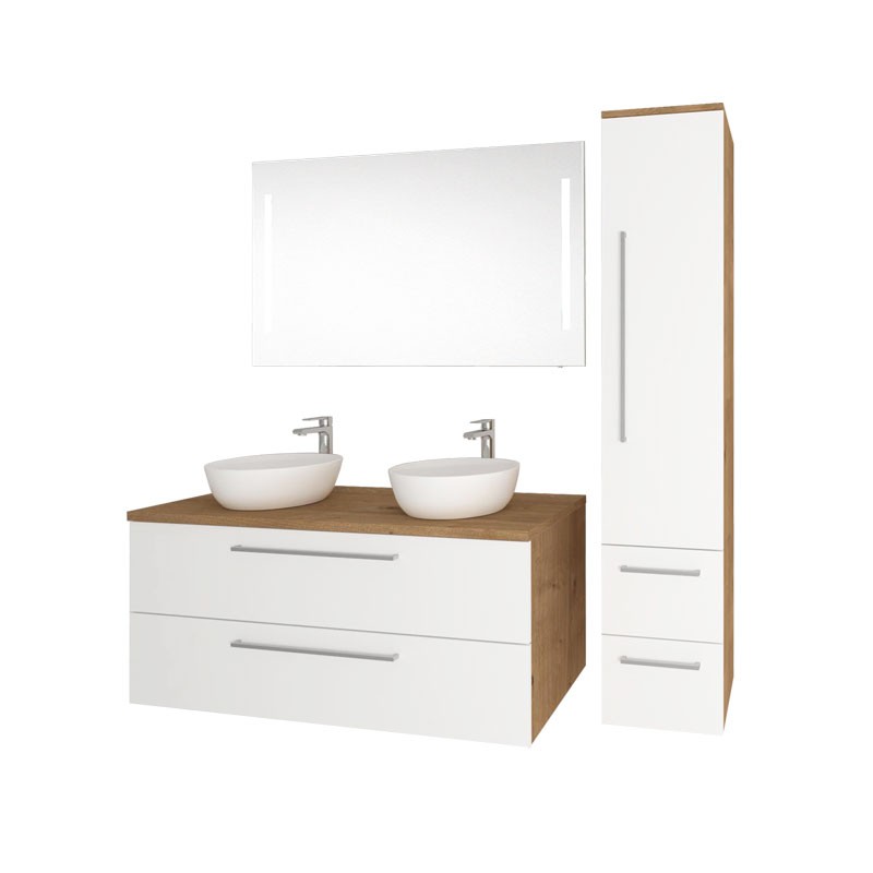 Jednoduchost, efektivnost, elegance. To jsou hlavní společné jmenovatele koupelnového nábytku Bino, který ozdobí každou koupelnu. Díky kombinaci inovací a spolehlivého přístupu, pak vzniká kvalitní a zároveň velmi moderní nábytek. Barevné kombinace bílý lesk, bílý lesk+dub zajišťují, že bude nábytek ladit do každého typu koupelny. Uživatelsky velmi praktické jsou pak dvě plnovýsuvné zásuvky se samozavíracími pojezdy a tlumením Strong. Skříňka se dodává ve složeném stavu.