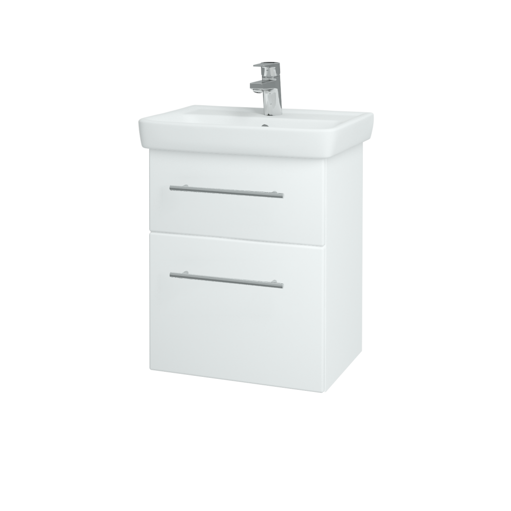 Závěsná koupelnová skříňka GO SZZ2 50 s umyvadlem (součástí ceny) a dvěma zásuvkami je součástí praktické kolekce , jejíž přednosti ocení zejména majitelé menších či středně velkých koupelen.