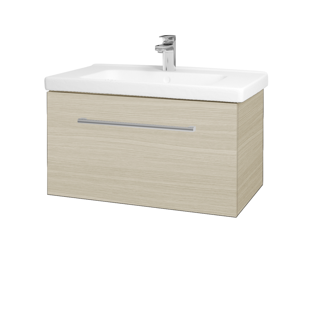 Součástí ceny této koupelnové skříně je s hranatým tvarem a pochromovaným odtokem. Vanička umyvadla má v přední části praktické zešikmení. Horní plocha umyvadla je rovná a může sloužit pro odkládání různých předmětů.