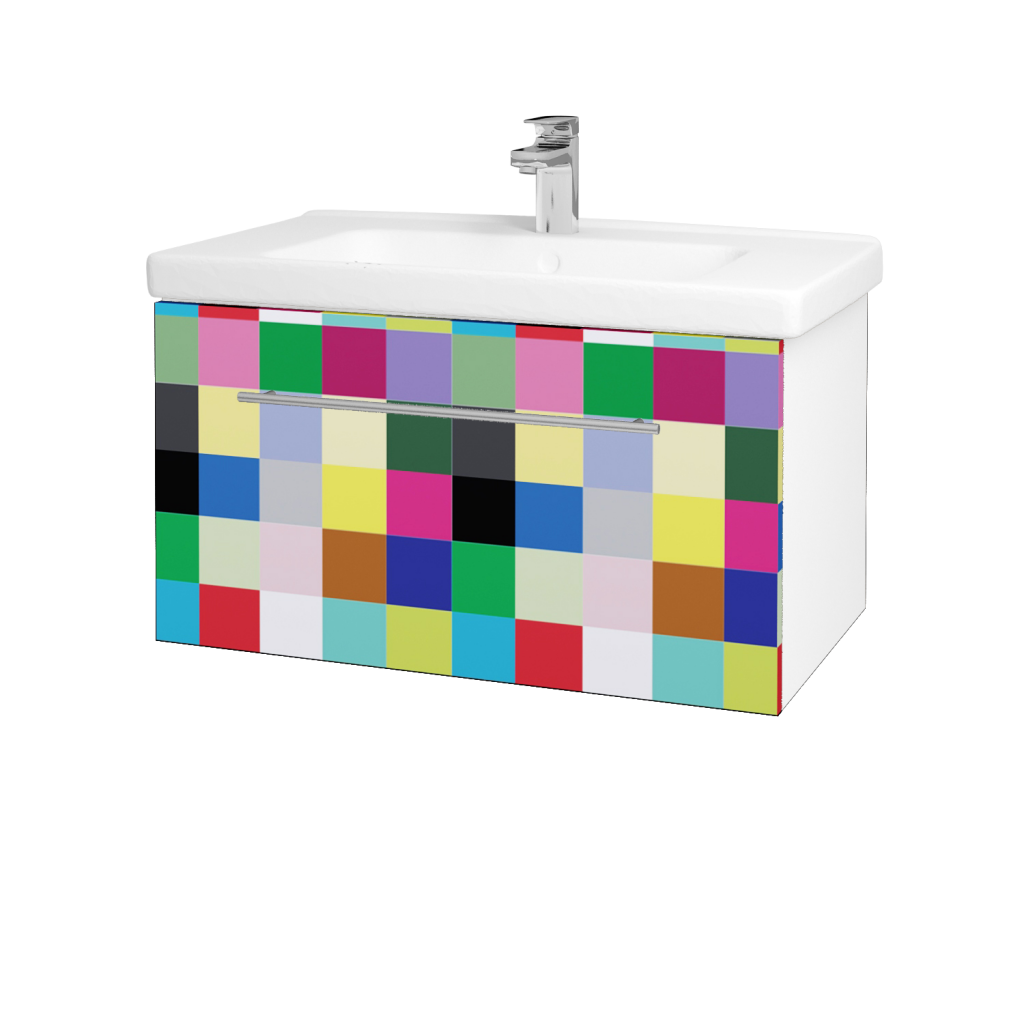 Součástí ceny této koupelnové skříně je s hranatým tvarem a pochromovaným odtokem. Vanička umyvadla má v přední části praktické zešikmení. Horní plocha umyvadla je rovná a může sloužit pro odkládání různých předmětů.