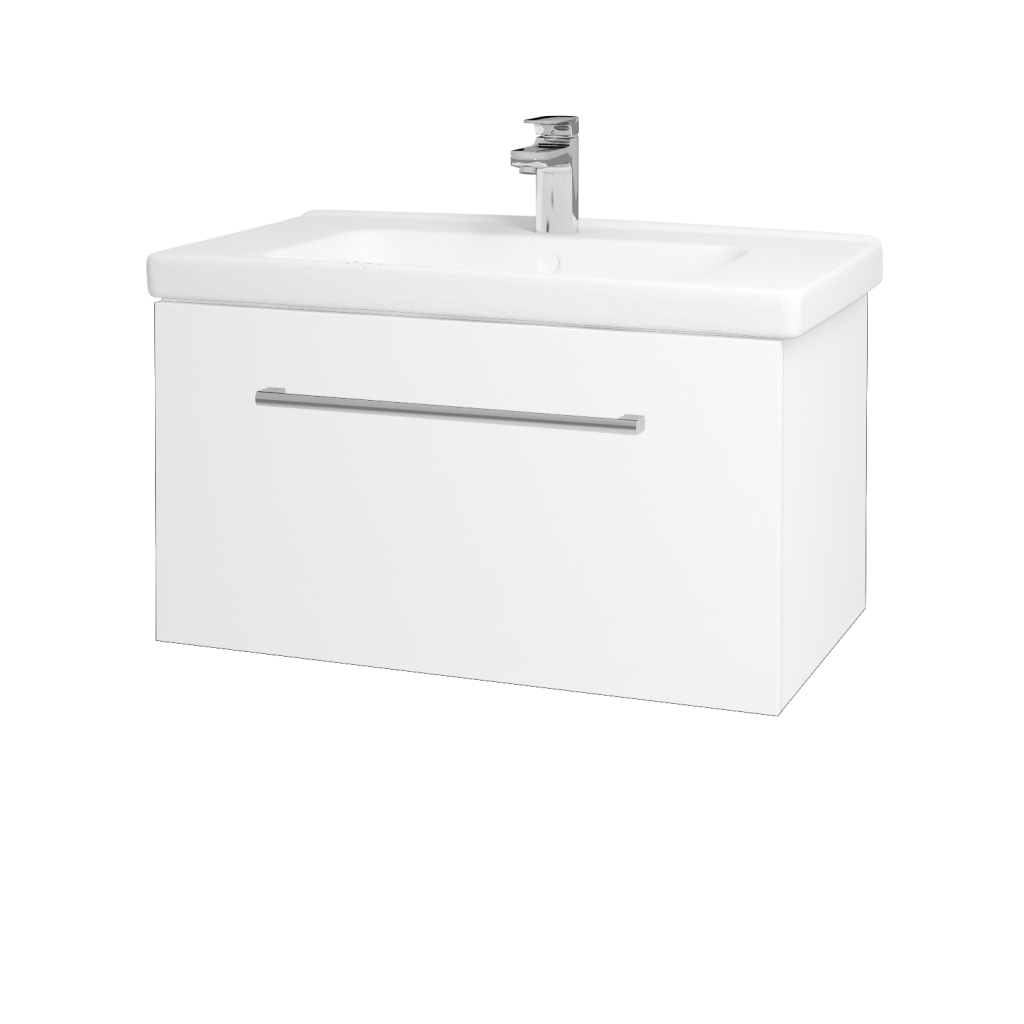Součástí ceny této koupelnové skříně je s hranatým tvarem a pochromovaným odtokem. Vanička umyvadla má v přední části praktické zešikmení. Horní plocha umyvadla je rovná a může sloužit pro odkládání různých předmětů.