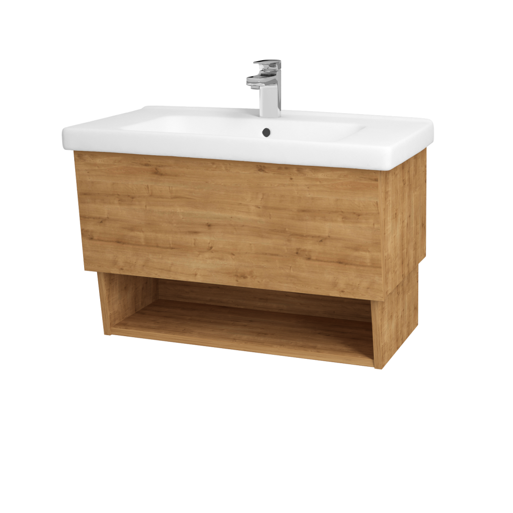 UmyvadloSoučástí ceny koupelnové skříňky je také kvalitní keramické umyvadlo Harmonia 80. Boční a zadní část umyvadla tvoří rovná plocha, která může sloužit jako praktická odkládací plocha, například pro dávkovač mýdla či další předměty potřebné pro každodenní hygienu.