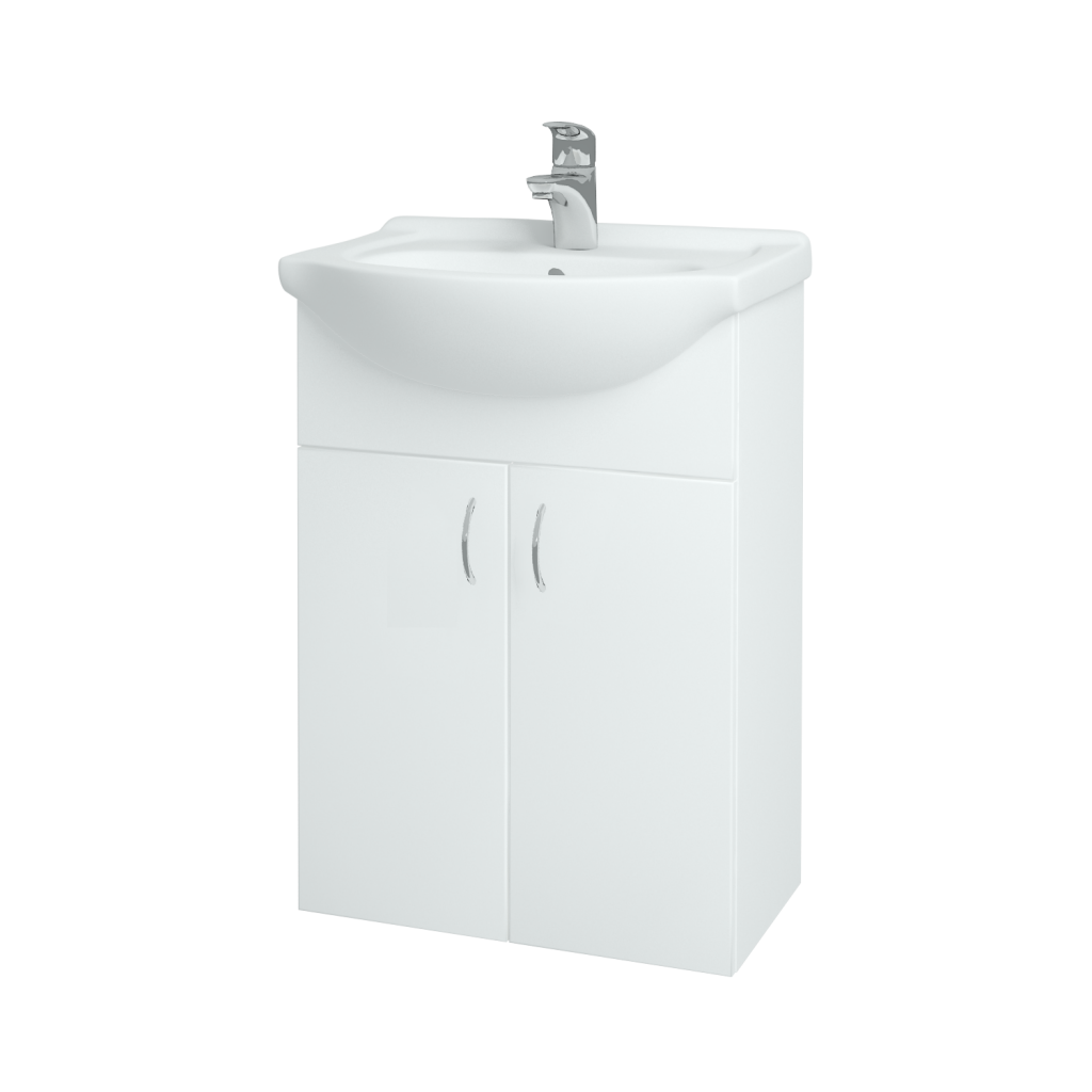 Závěsná koupelnová skříňka PLUTO SZD2 55 s keramickým umyvadlem Apolo 55 představuje možnost, jak si koupelnu vybavit kvalitním a cenově dostupným českým nábytkem. Díky své velikosti se skříňka SZD2 55 vejde do menších koupelen a zároveň poskytne i dostatek úložného prostoru.