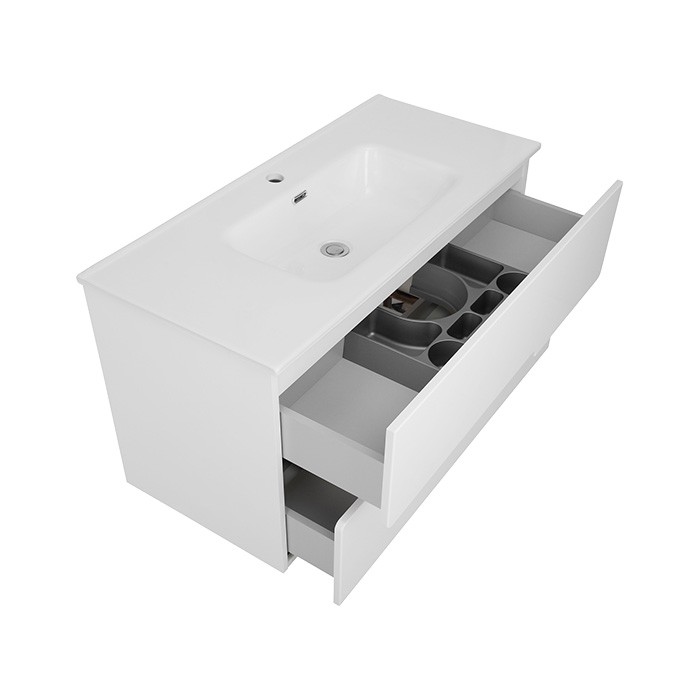 | Popis: | • koupelnová skříňka s keramickým umyvadlem AU-PHR 100 • 2 x zásuvka Soft-Close • plastový organizér v horní zásuvce • frézované úchyty • 4 x vyměnitelná dekorativní lišta: bílá, dub country, dub urban, antracit |