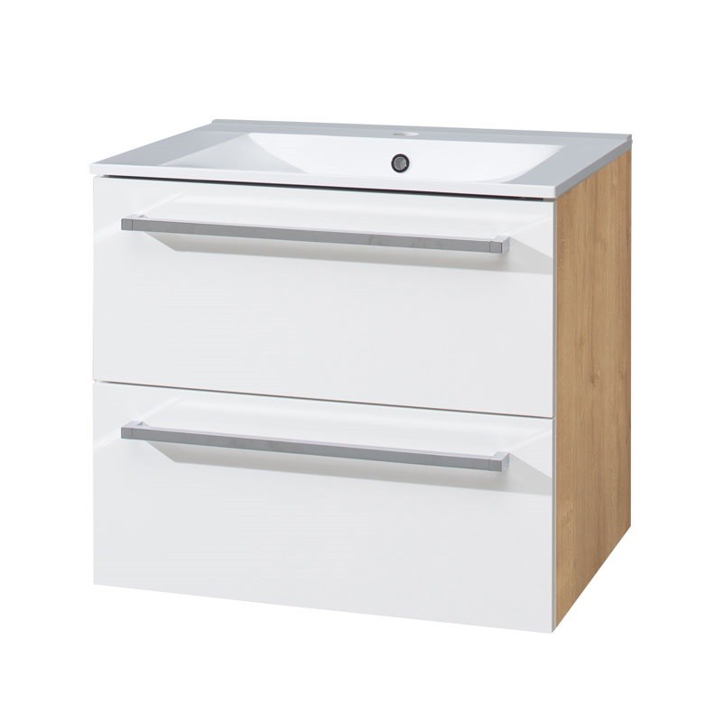 MEREO - Bino, koupelnová skříňka s keramickým umyvadlem 61 cm, bílá/dub (CN670)