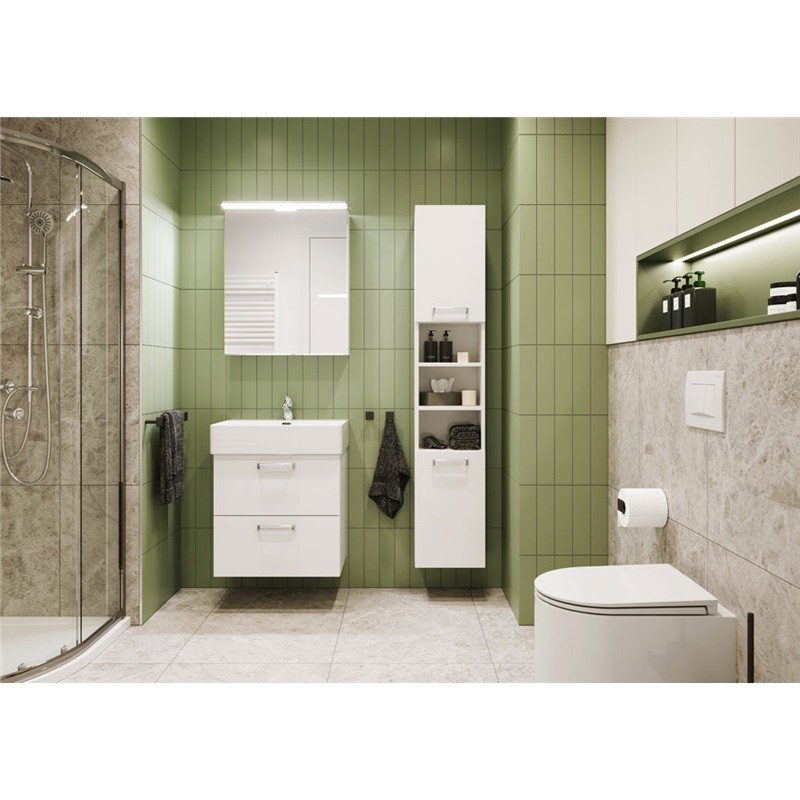 Jednoduchost, efektivnost, elegance. To jsou hlavní společné jmenovatele koupelnového nábytku, který ozdobí každou koupelnu. Tato řada koupelnového nábytku je dodávána pouze v bílé barvě a je vytvořena pro univerzální použití s elegantním a jednoduchým stylem. Dvířka skříněk jsou osazeny panty s tlumením dovírání. Skříňka je určená k zavěšení a je dodávána ve smontovaném stavu.