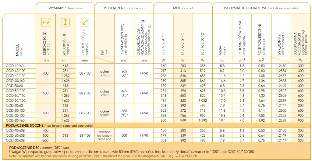 Dostupné rozměry radiátoru CODE do koupelny:- 400 × 613 mm, výkon 283 W, (topná tyč 300 W)