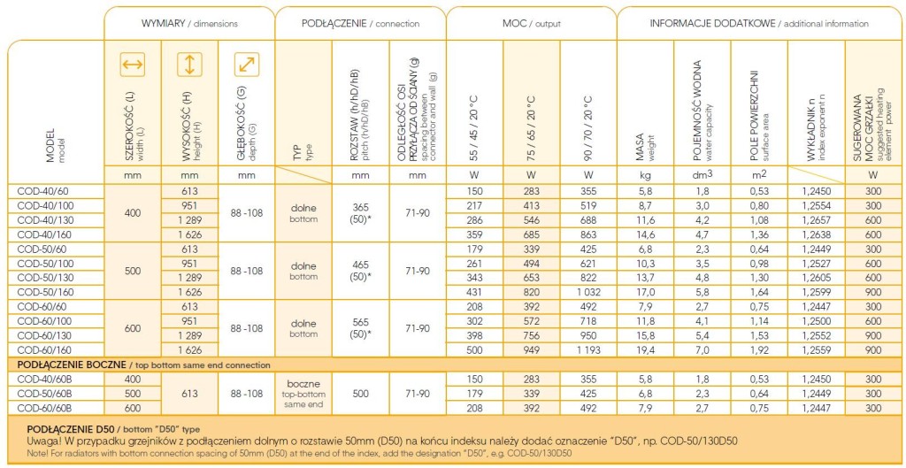 - 500 × 613 mm, výkon 339 W, (topná tyč 300 W) - BOČNÍ PŘIPOJENÍ