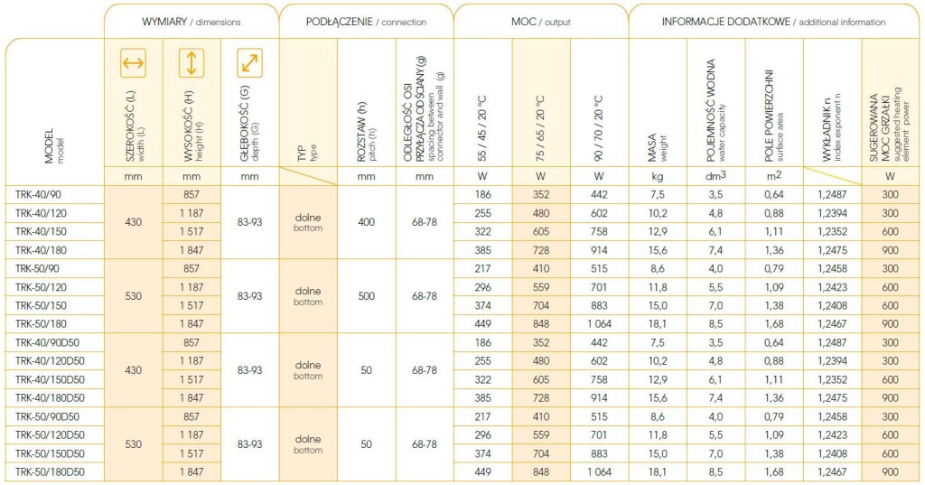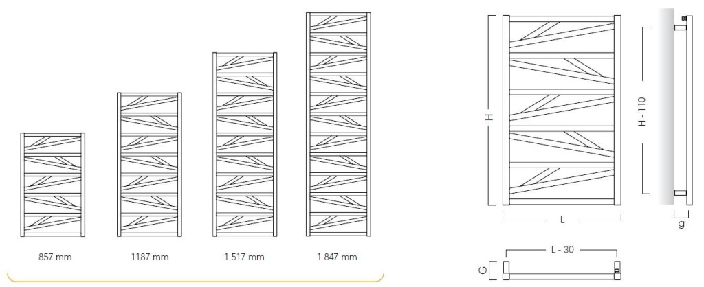 Dostupné rozměry radiátoru TRICK do koupelny:- 430 × 857 mm, výkon 352 W, (topná tyč 300 W)