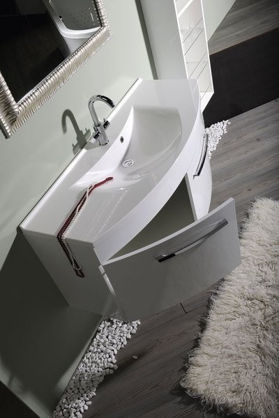 Koupelnový nábytek Julie zjemňuje linie hran líbivým zaoblením čelních ploch umyvadlových skříněk. Výsledkem je kompaktní design umocněný lesklým lakem. K dispozici jsou umyvadlové skříňky s dvířky nebo v provedení se zásuvkami. V naší nabídce naleznete umyvadla z litého mramoru, včetně praktického dvojumyvadla, ke kterým jsou tyto skříňky vhodné