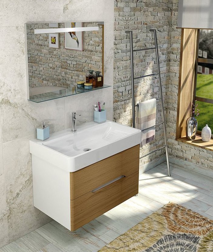 Koupelnový set MEDIENA 77, barva: bílá mat/dub natural