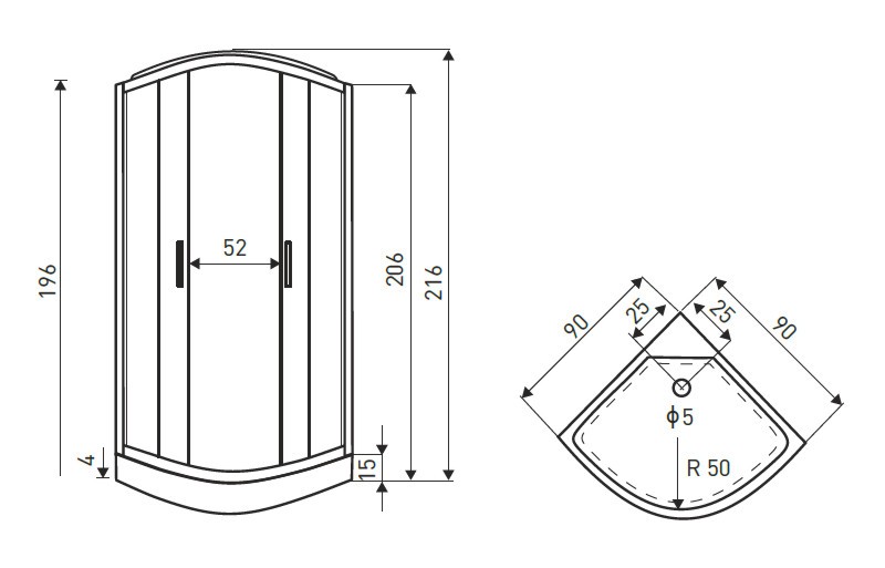 - Rozměry kabiny: 90 x 90 x 216 cm