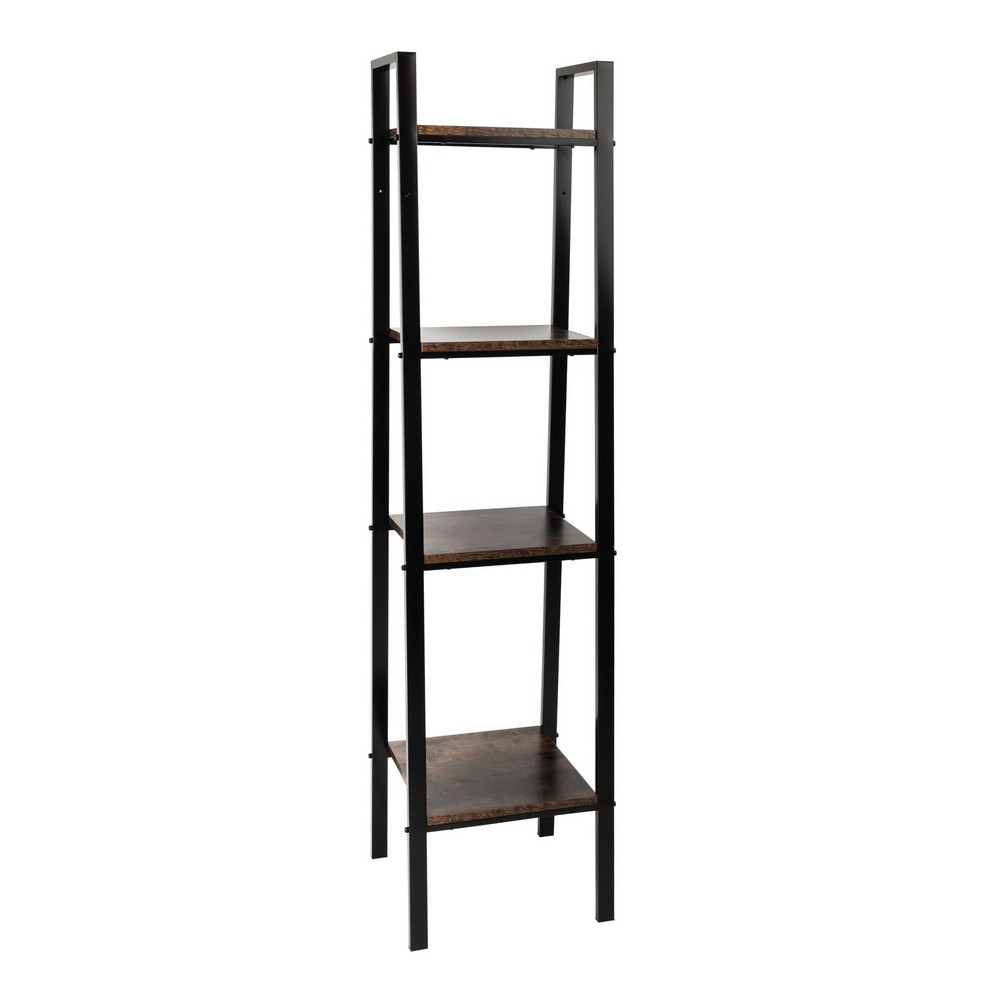 Úzká police se čtyřmi policemi z MDF desky potažené krásnou pálenou dřevěnou dýhou. Je vyrobena z černě lakované oceli. Bude ideálním řešením pro uložení a vystavení různých předmětů v koupelně, obývacím pokoji nebo na jakémkoli jiném místě ve vaší domácnosti. Tato úzká police nabízí velkou kapacitu a pevnou konstrukci zaručující nejen funkčnost, ale i estetický vzhled. Vyžaduje vlastní montáž.