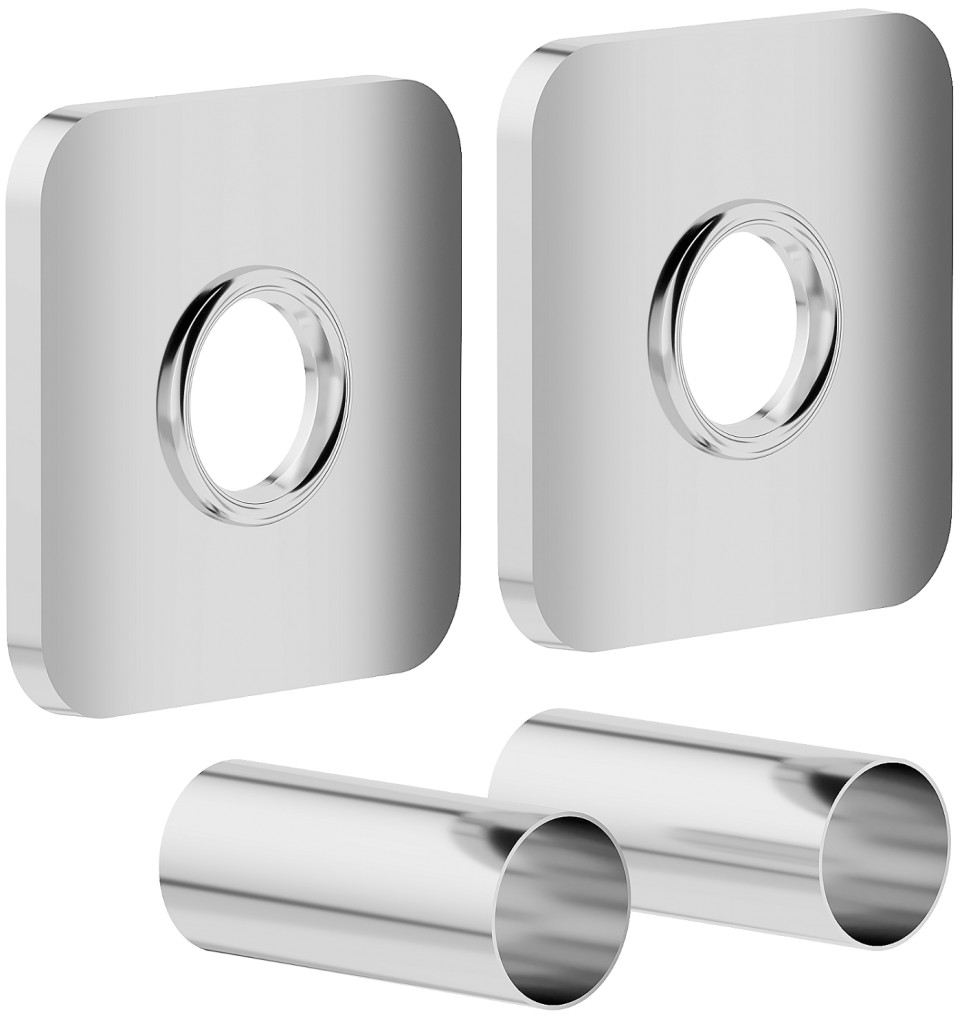 Maskovací sada se skládá ze dvou samostatných rozet a objímek určených pro montáž termostatických sad a radiátorových ventilů.