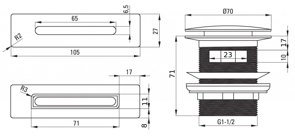 Krytka přepadu a click-clack bílý k volně stojícím vanám: