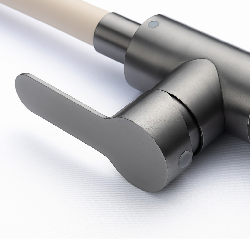Ramínka těchto kuchyňských baterií jsou navržena s důrazem na variabilitu a estetiku. Nabízíme je ve více barevných provedeních, díky čemuž si snadno vyberete variantu, která bude ladit s vaším interiérem. Spodní část baterie a koncovka u perlátoru jsou dostupné ve dvou elegantních verzích – nerezové a grafitové. Tato kombinace umožňuje vytvořit stylové a individuální řešení pro každou kuchyni, a zároveň zachovává vysokou odolnost a snadnou údržbu.