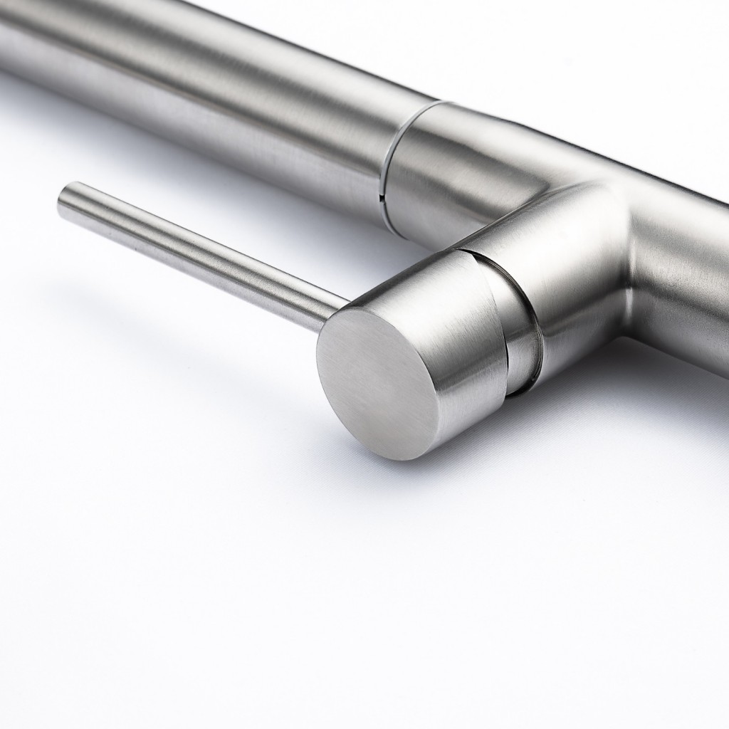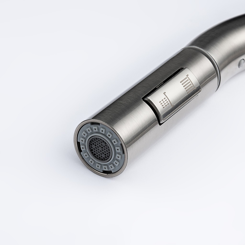 Kuchyňská baterie s výsuvným výtokem je praktickým a moderním řešením pro každodenní použití. Díky elegantnímu designu v barvě nerezové oceli se hodí do každého typu kuchyně a zároveň nabízí vysokou funkčnost.