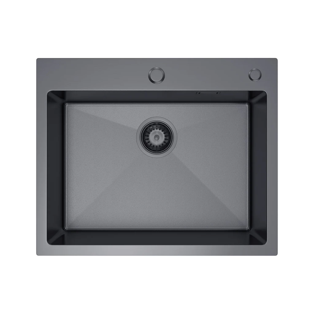 Kuchyňský dřez z nerezové oceli 55 x 45 se sifonem je praktickým a stylovým řešením do každé moderní kuchyně. Je vyroben z kvalitní INOX oceli s kartáčovaným saténovým povrchem, který je odolný, snadno se udržuje a působí elegantně. Dřez je opatřen povrchovou úpravou VULKAN, která mu dodává elegantní tmavý matný vzhled a zároveň zvyšuje jeho odolnost vůči poškrábání a otiskům prstů. Tato moderní úprava nejen skvěle vypadá, ale také usnadňuje údržbu a prodlužuje životnost dřezu.
