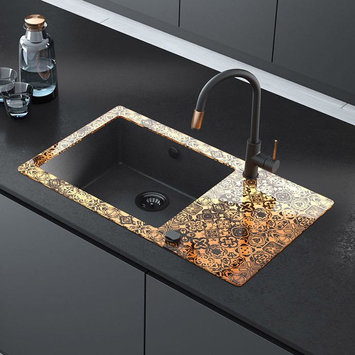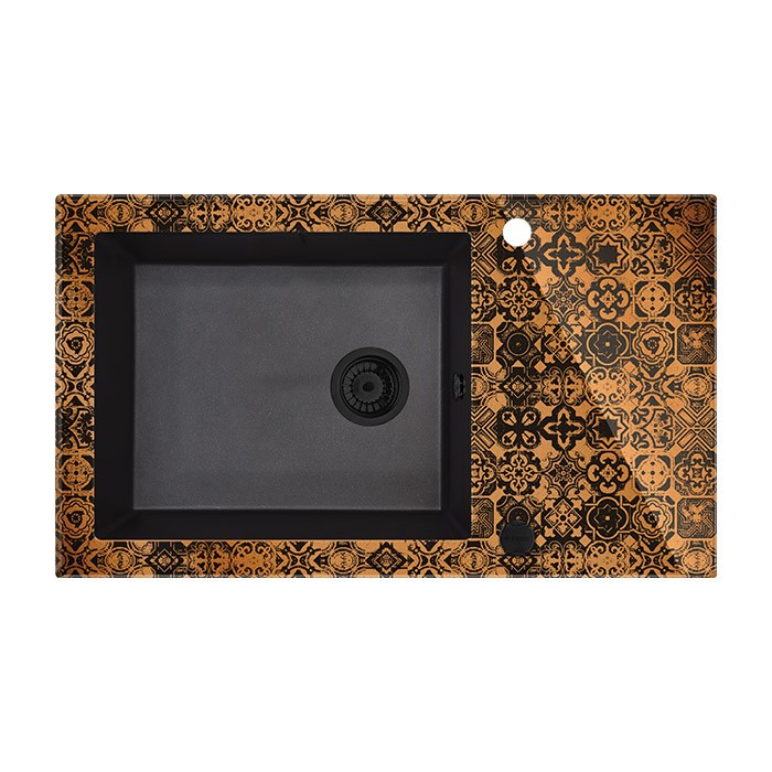 | Popis: | • Skleněný kuchyňský obdélníkový dřez s grafikou a granitovou komorou s automatickým uzávěrem odpadu • ANTISEPTICKÝ povrch • barva BRONZOVÁ |