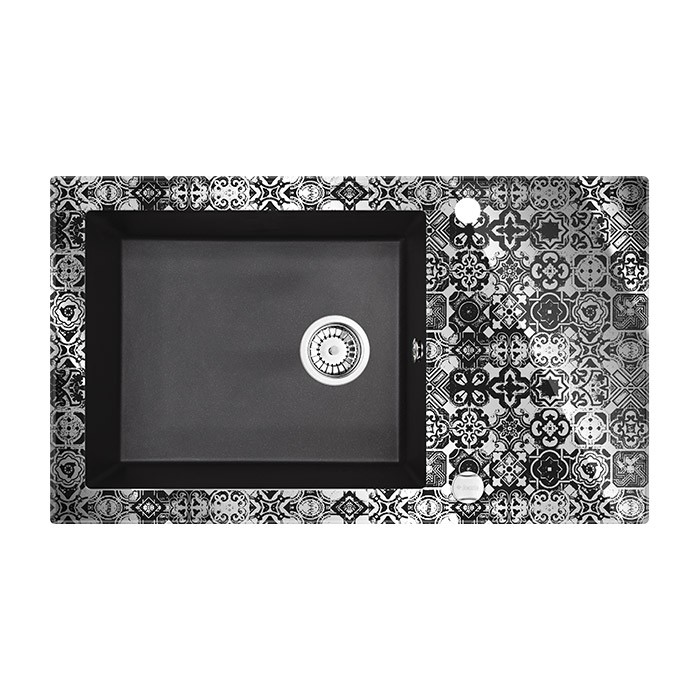 | Popis: | • Skleněný kuchyňský obdélníkový dřez s grafikou a granitovou komorou s automatickým uzávěrem odpadu • ANTISEPTICKÝ povrch • barva GRAFIT |